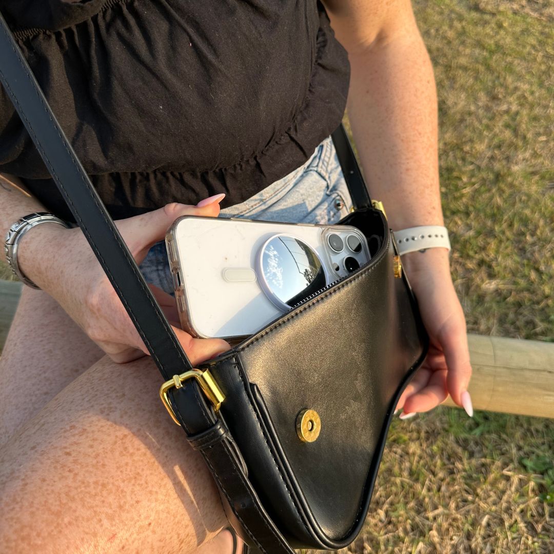 The Magnetic Selfie Mirror transforms the way you capture photos and videos by letting you use your phone’s rear camera for professional-quality selfies. The convex, wide-angle mirror ensures perfect framing, showing more of your face and background with every shot. Built with a strong MagSafe magnetic hold and a scratch-resistant premium finish, it stays firmly in place while giving you a clear, distortion-free reflection.